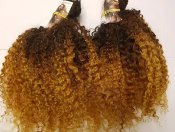 • Afro kinky golden brown blond handgemaakte weave